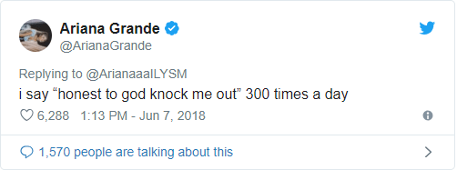 - It’s not nearly as bad as “H2GKMO,” though. For those wondering, it stands for “honest to god knock me out,” which is apparently something Ariana says 300 times a day?