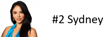 Sydney is at the top of the pack this week because she successfully (for now!) trounced her arch-nemesis, Alayah. Although, I don’t think being so deeply entrenched in this kind of drama will work out well for her in the long run.